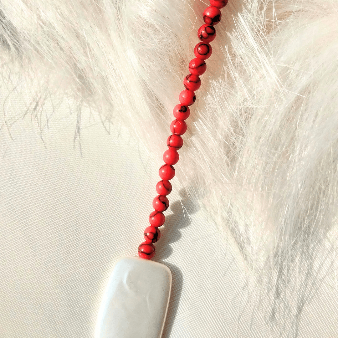- نحاس مطلي بالذهب عيار 18 قيراطًا، حجر هاولايت أحمر، عرق اللؤلؤ، زركونيا مكعبة