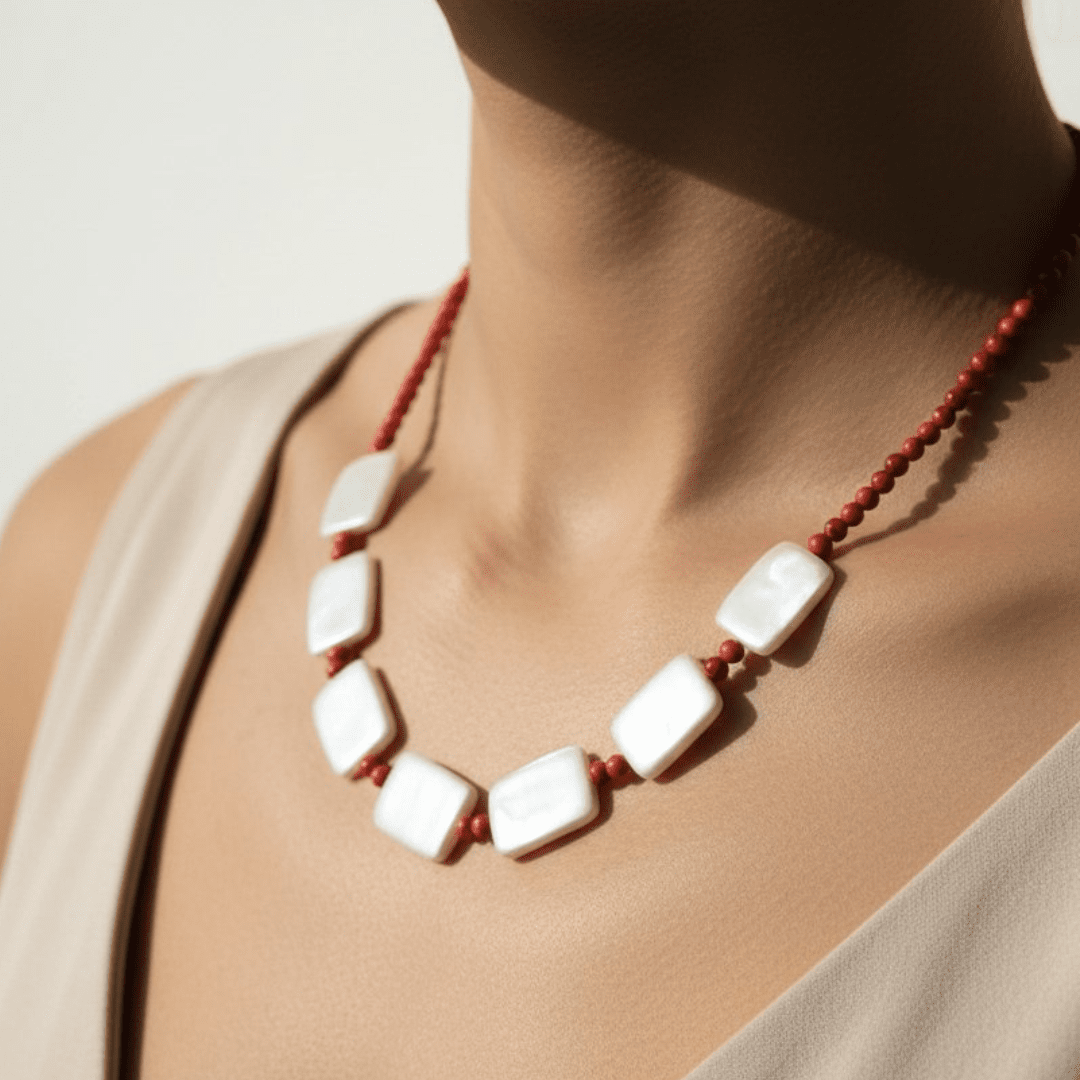 ترتبط الأحجار الحمراء تاريخياً بالحيوية والحماية، فهي ترمز إلى قوة الحياة في التراث الفارسي القديم، بينما يرمز عرق اللؤلؤ إلى النقاء.